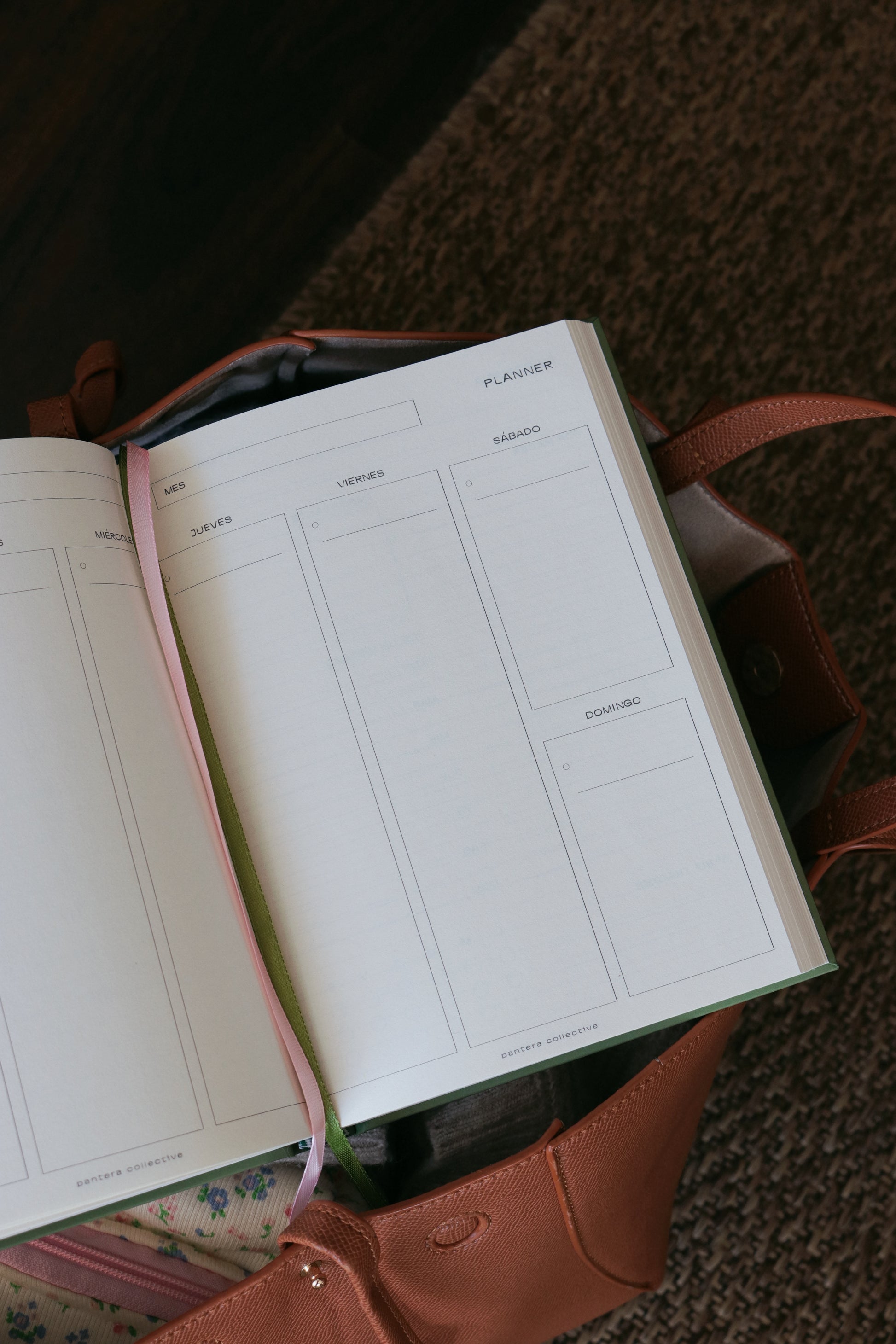 🌷 Costura al hilo, que permite que el planner se abra completamente.