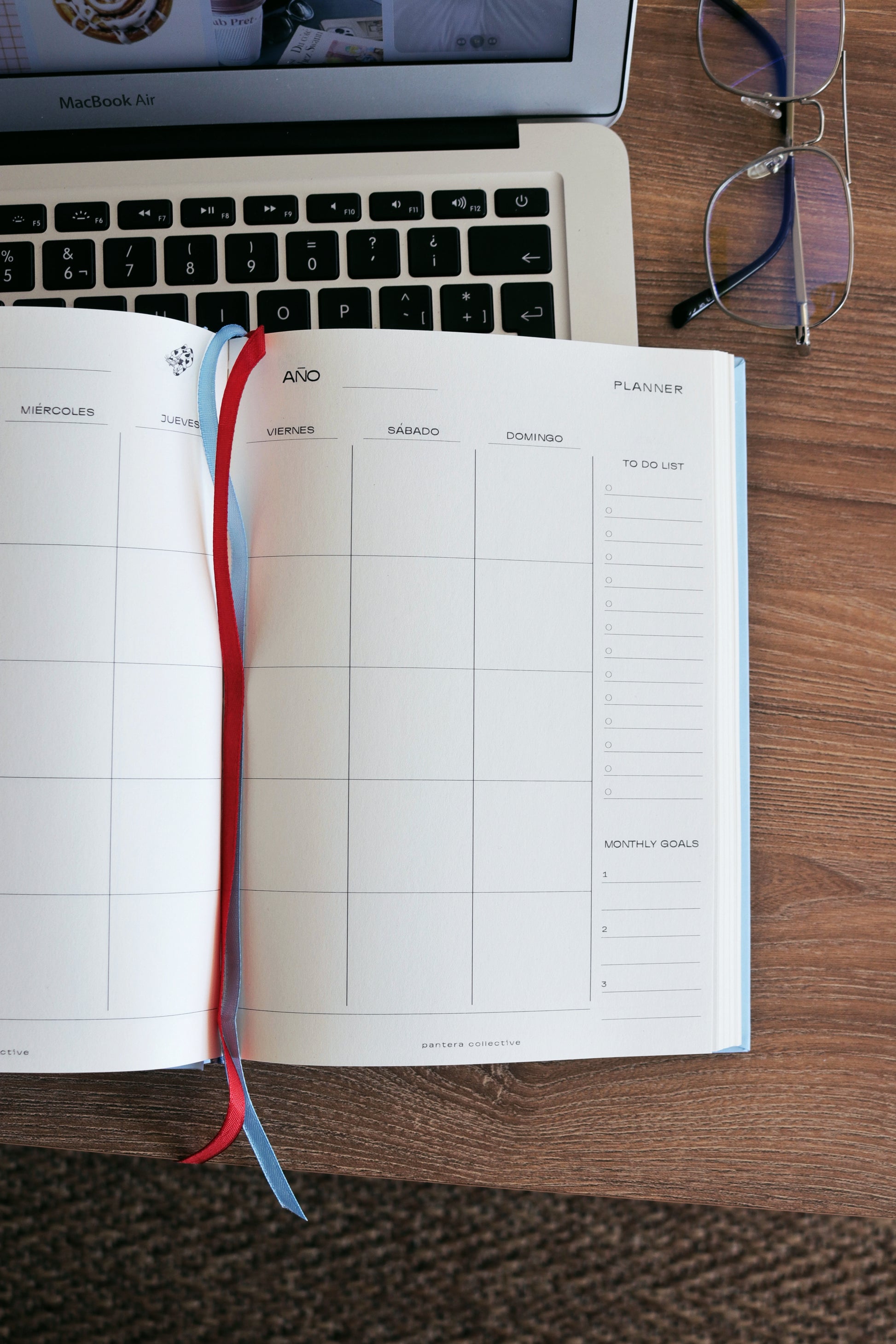🌷 Costura al hilo, que permite que el planner se abra completamente.